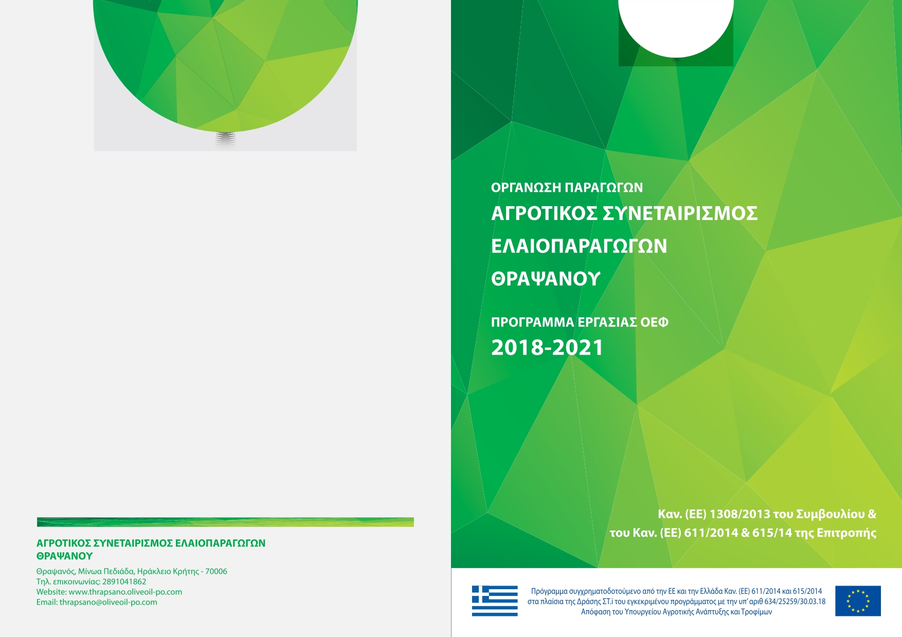 Οι εγκεκριμένες δραστηριότητες του προγράμματος της Ο.Ε.Φ. – Αγροτικός Συνεταιρισμός Ελαιοπαραγωγών Θραψανού εντάσσονται στους ακόλουθους πέντε (5) τομείς δράσης που καθορίζονται από το Άρθρο 3 παράγραφος 1 του Κανονισμού (ΕΕ) αριθ. 611/2014 και αποτελούν επιλέξιμες δραστηριότητες για Ενωσιακή και Εθνική χρηματοδότηση.