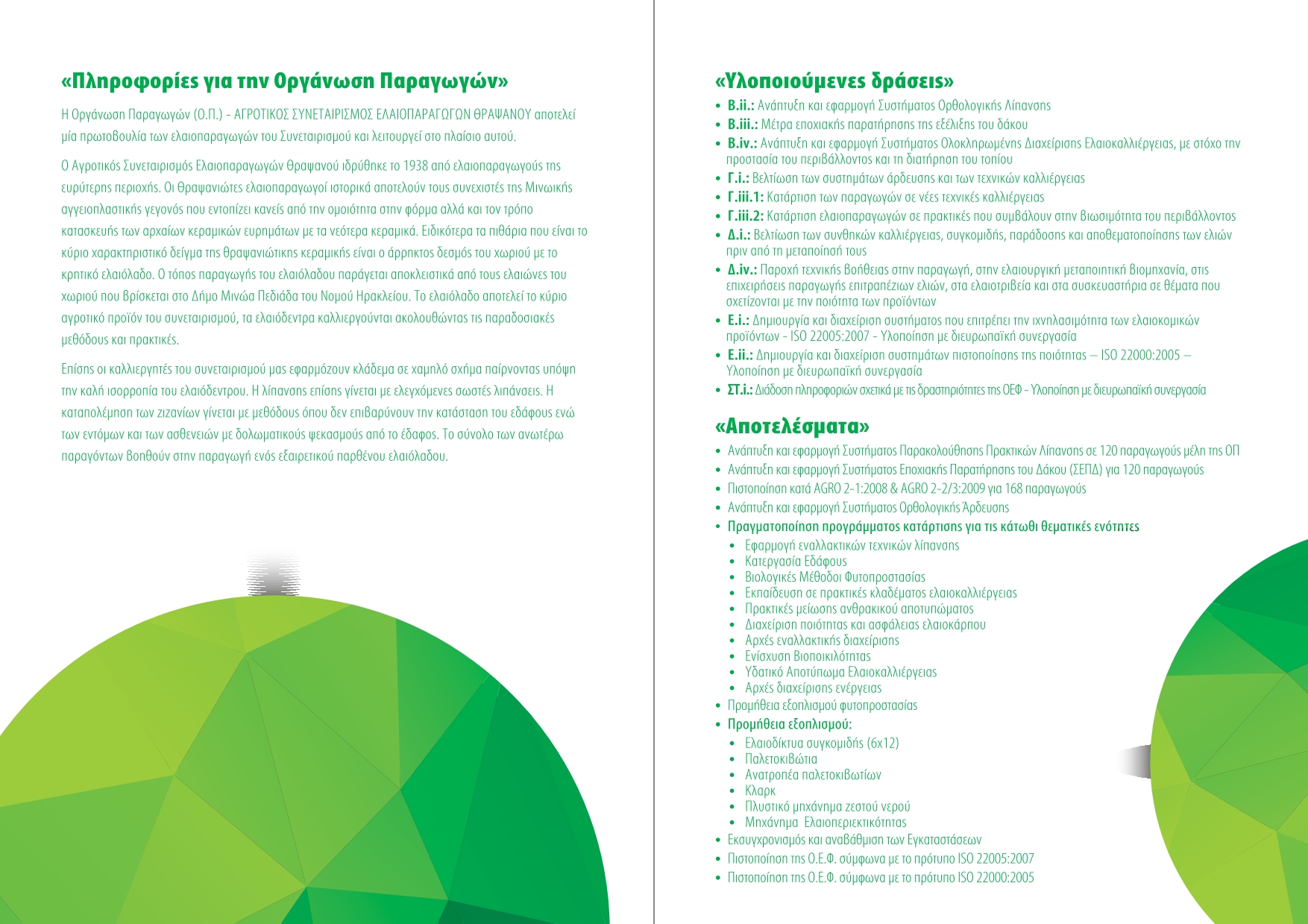 - Τομέας (Β): Βελτίωση των περιβαλλοντικών επιπτώσεων της ελαιοκαλλιέργειας,